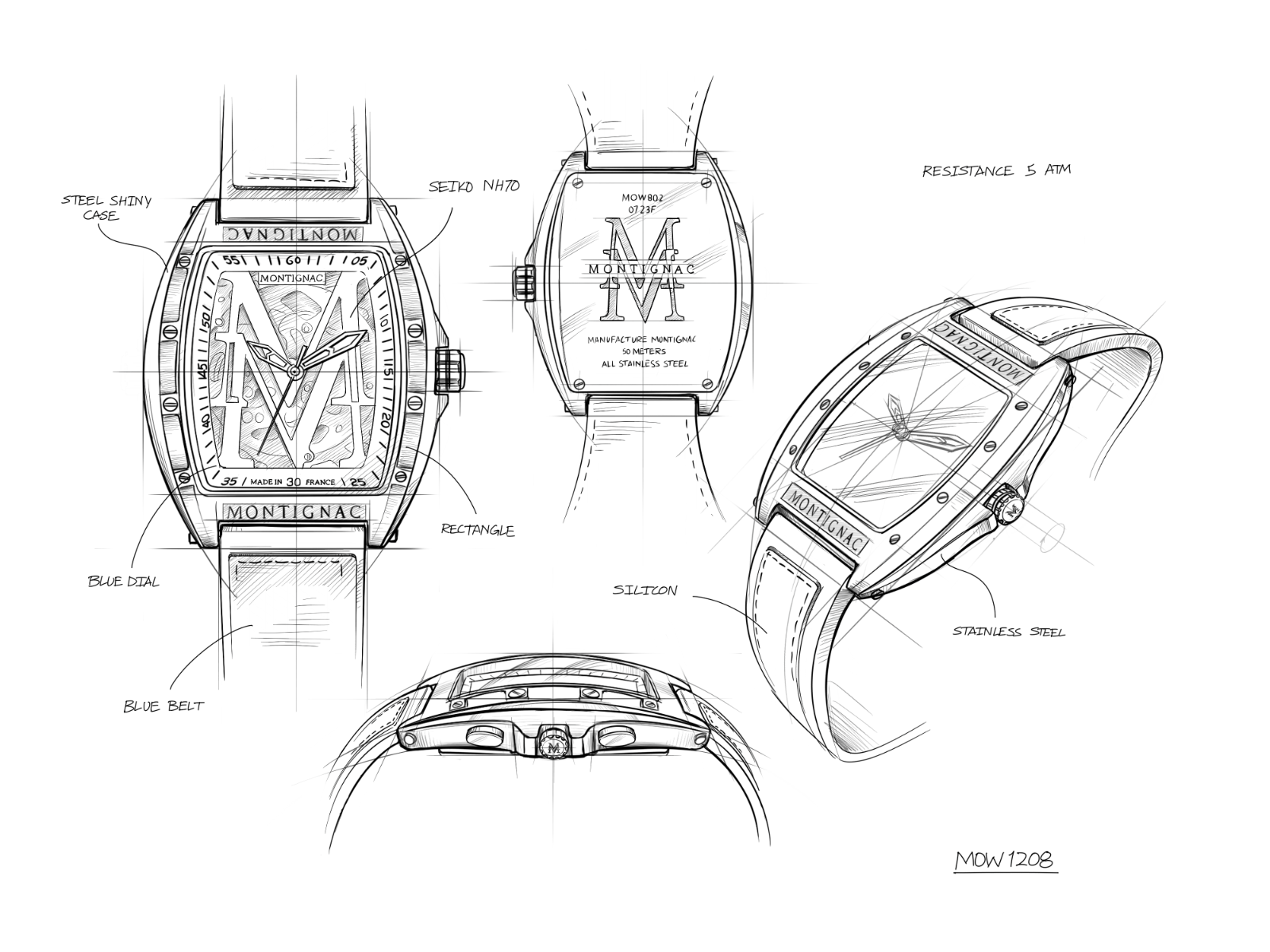 Bold and contemporary, the MOW1208 men’s watch proudly displays the Maison’s iconic double “M” at the heart of its dial, offering a glimpse of the gears of its automatic movement. The three hands (hours, minutes, seconds) reflect the brand’s watchmaking expertise. The blue silicone strap ensures comfort and flexibility on the wrist, while its deployment buckle guarantees a secure fit. This watch combines performance with a strong, distinctive style.