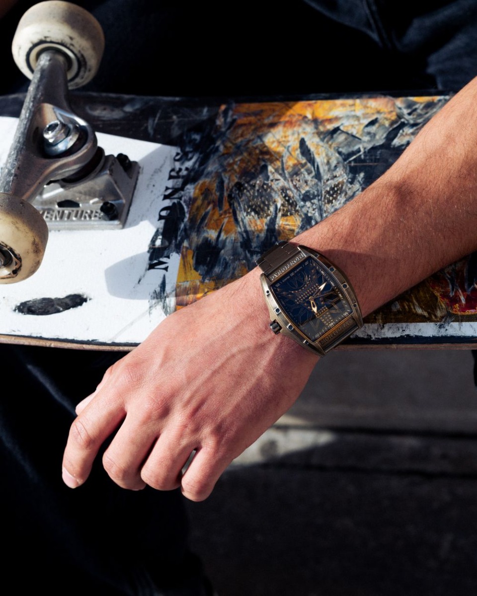 Imposing and distinctive, the MOW1211 men’s watch features a bronze stainless steel case with generous dimensions of 53.7 x 45 mm. Its black dial highlights the green “Tour Eiffel” motif, reminiscent of our 2024 limited edition, which sold out in just 24 hours.