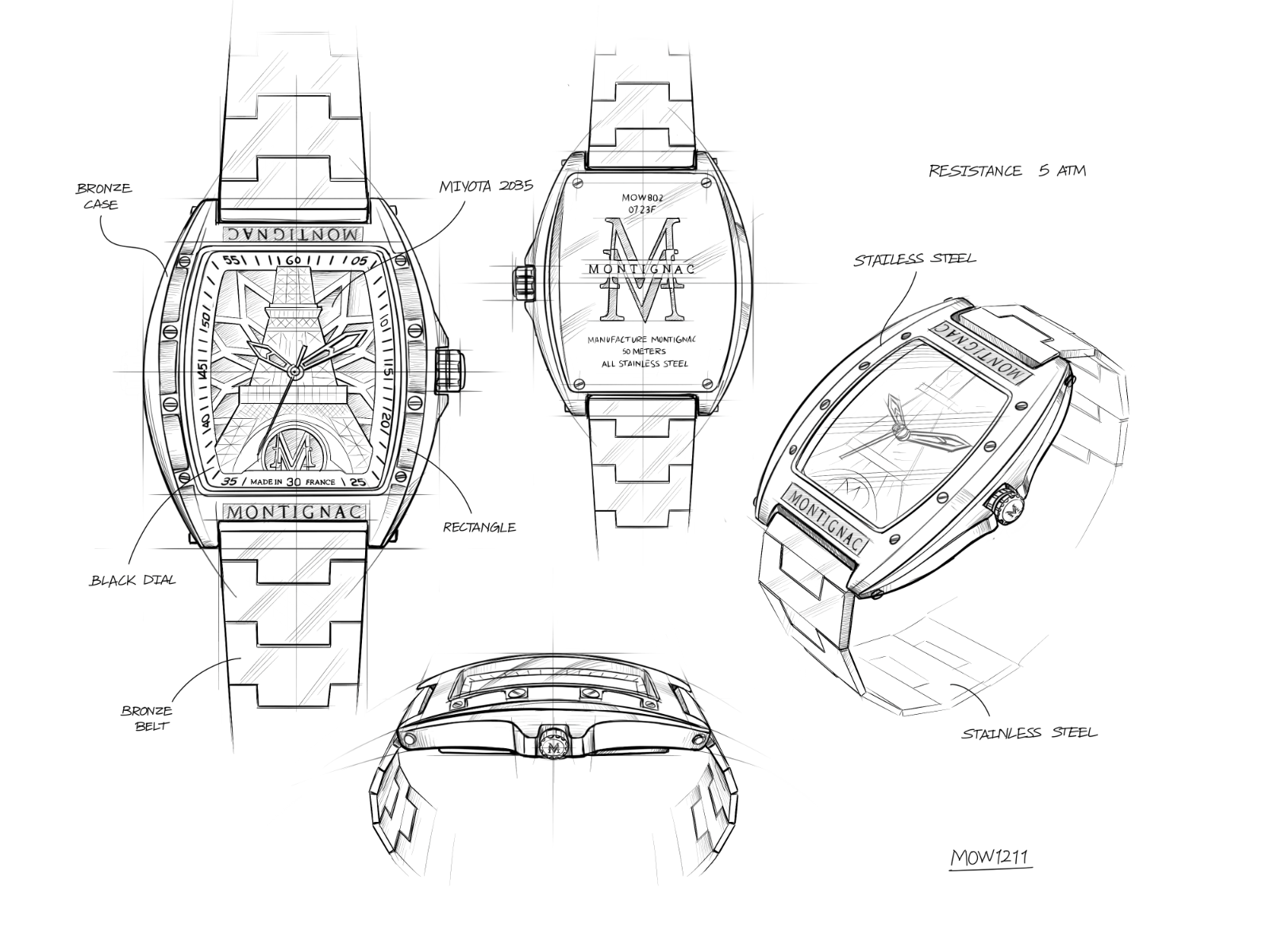 Each watch is presented in its Montignac case, accompanied by its warranty booklet.