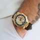 Designed and assembled in France, the MOW301 men's watch features an octagonal case, an iconic shape of the Maison. Its dial in black and gold tones adorned with the Montignac monogram reveals the workings of its automatic movement.