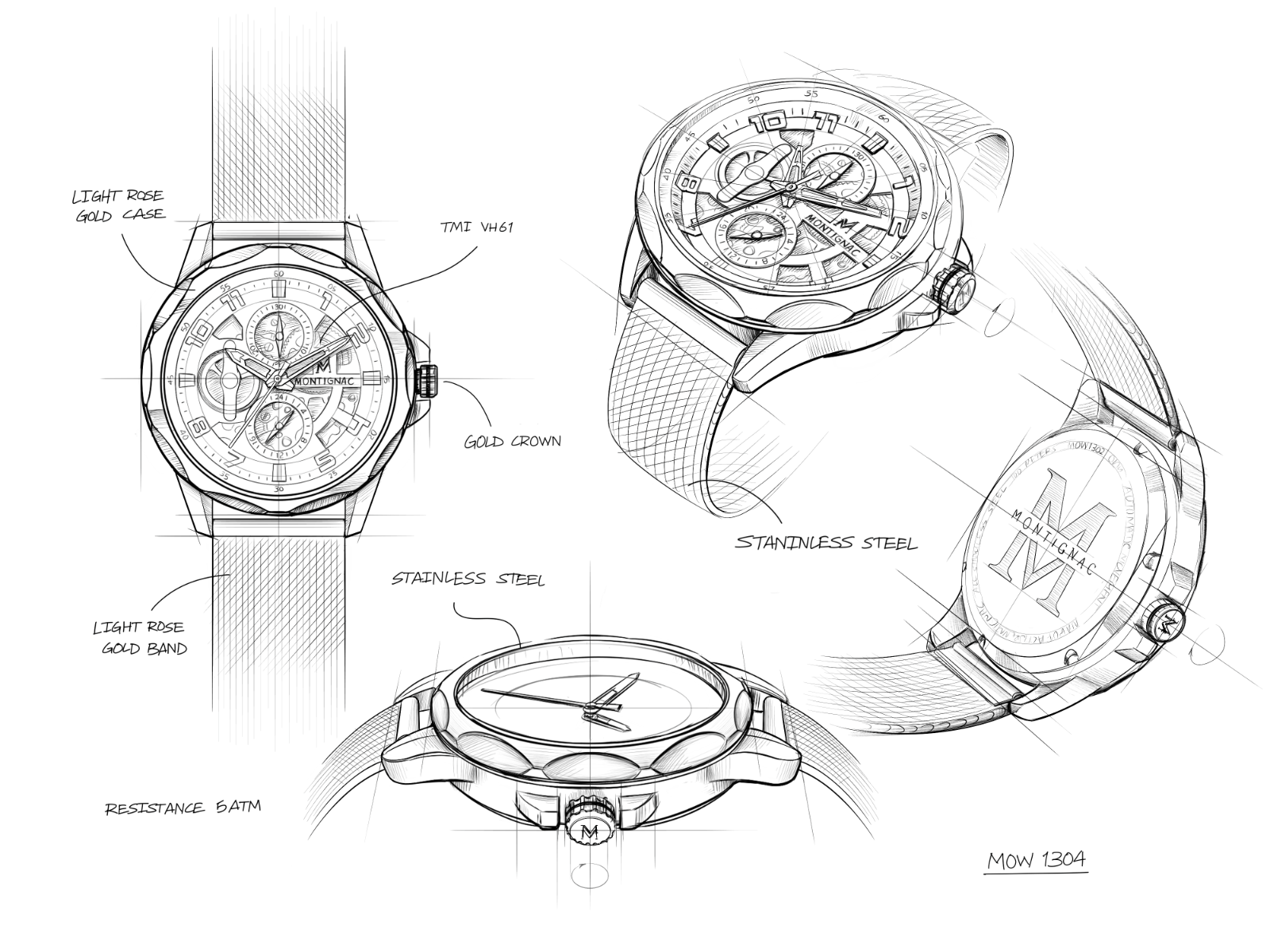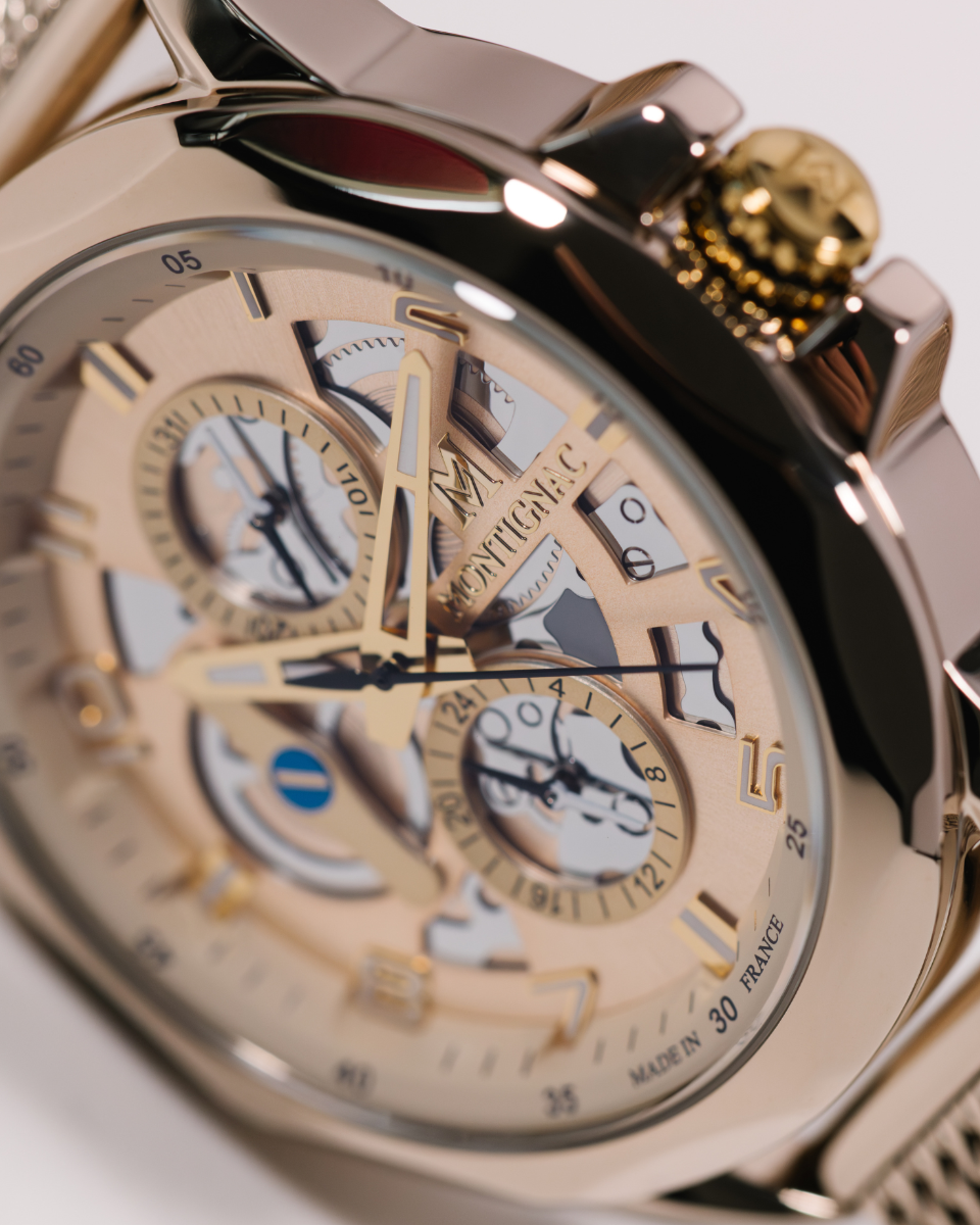 Chaque montre est présentée dans son écrin Montignac, accompagnée de son carnet de garantie.