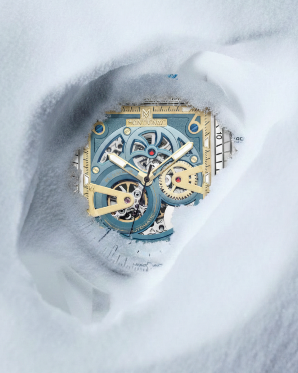 Dessinée et assemblée en France, la montre pour homme MOW1310 se distingue par son imposant boîtier de 55 × 42 mm couleur argent. Associé à un cadran bleu glacé aux détails dorés mats, il laisse entrevoir les rouages de son mouvement automatique, pour une allure contemporaine et raffinée. Avec son design exclusif, ce modèle incarne élégance, sophistication et robustesse.